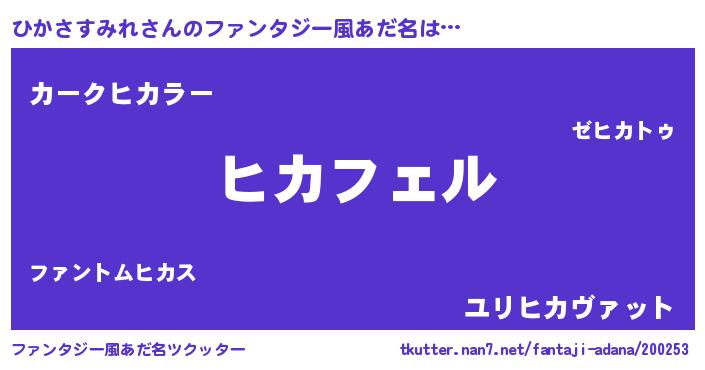 | ヒーロー風カッコイイあだ名 | 『スーパーヒカサスミレ』『暗黒騎士ヒカ』 |