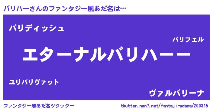 意味不明あだ名 | 『バリハーフォーエバー』 |