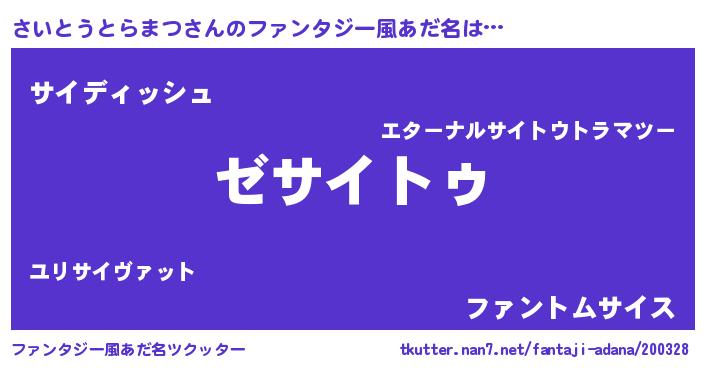 | 伝説のあだ名 | 『古文書に記された吟遊詩人さいとうとらまつ』 |