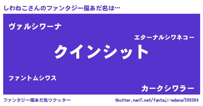 | 男性向けラノベタイトル風あだ名 | 『ノーゲーム・ノーシワネコ』 |