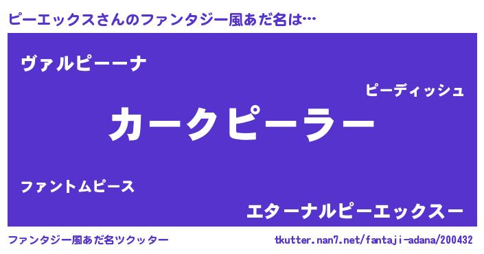 | 男性向けラノベタイトル風あだ名 | 『緋弾のピーエックス』 |