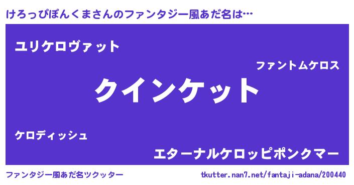 | ヒーロー風カッコイイあだ名 | 『正義の使者けろっぴぽんくま』 |