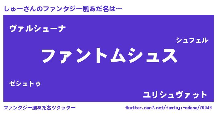 | 男性向けラノベタイトル風あだ名 | 『しゅーの嫁は女の子じゃないと思った?』 |