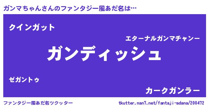 | ヒーロー風カッコイイあだ名 | 『ネオガンマチャン』『魔戒騎士ガン』 |