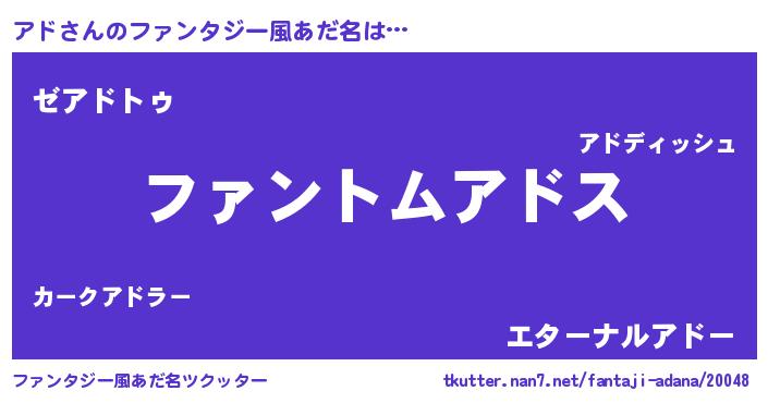 | 男性向けラノベタイトル風あだ名 | 『アドの嫁は女の子じゃないと思った?』 |