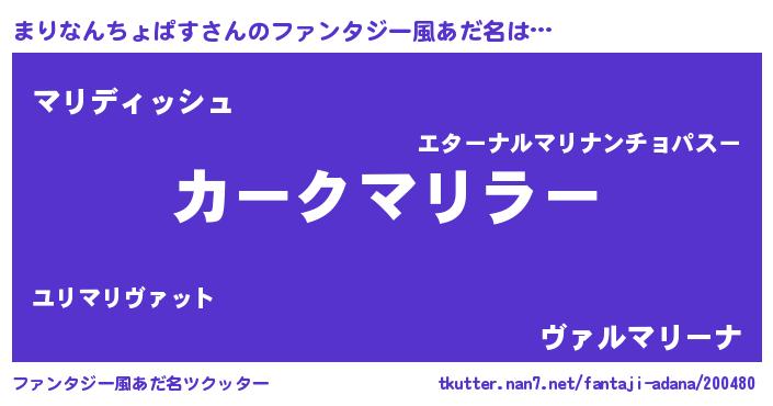 | 胡散臭い通販商品みたいなあだ名 | 『来世でも幸せになれる水素水…その名も「まりなんちょぱす」』 |