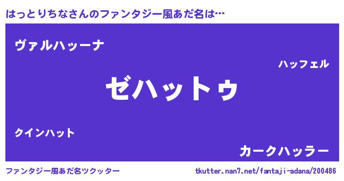 | 意味不明あだ名 | 『自称はっとりちな』 |