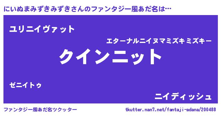 | 男性向けラノベタイトル風あだ名 | 『おまえをオタクにしてやるから、俺をにいぬまみずきみずきにしてくれ! 』 |