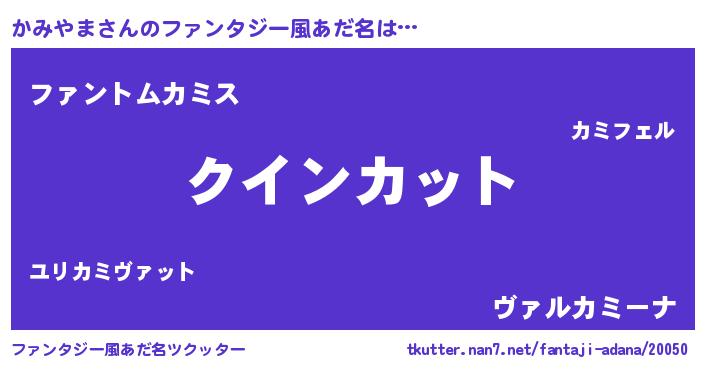 | 男性向けラノベタイトル風あだ名 | 『おまえをオタクにしてやるから、俺をかみやまにしてくれ! 』 |