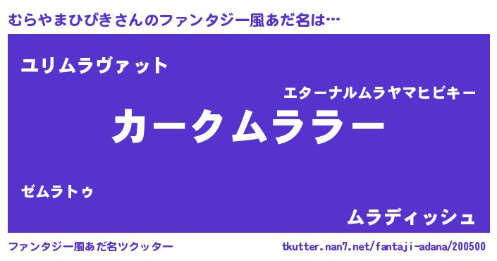 | ヒーロー風カッコイイあだ名 | 『ネオムラヤマヒビキ』『仮面ムラダー』 |
