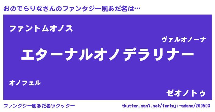 | 意味不明あだ名 | 『おのでらりなフォーエバー』 |