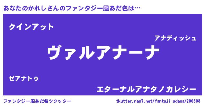 | 男性向けラノベタイトル風あだ名 | 『魔弾の王とあなたのかれし』 |