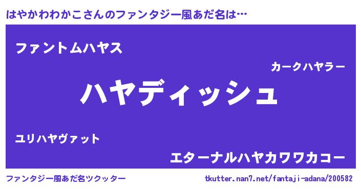 | ヒーロー風カッコイイあだ名 | 『ネオハヤカワワカコ』『暗黒騎士ハヤ』 |