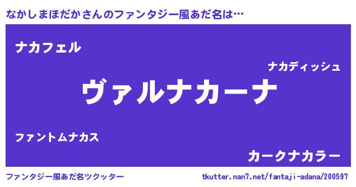 | 男性向けラノベタイトル風あだ名 | 『魔弾の王となかしまほだか』 |