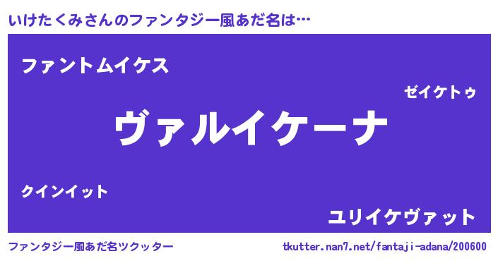 | 意味不明あだ名 | 『住所不定無職いけたくみ(95歳)』 |