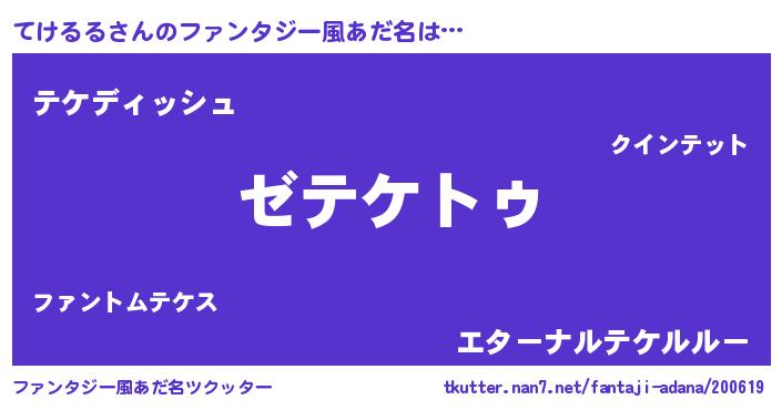 | 伝説のあだ名 | 『聞きしに勝る勇者てけるる』 |
