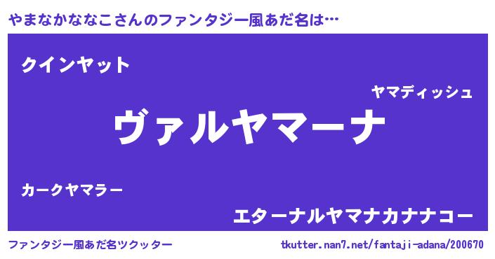 | 男性向けラノベタイトル風あだ名 | 『魔弾の王とやまなかななこ』 |
