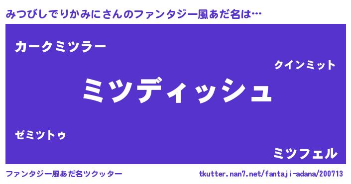 | ヘコむあだ名 | 『みつびしでりかみに(苦笑)』『みつにー』 |