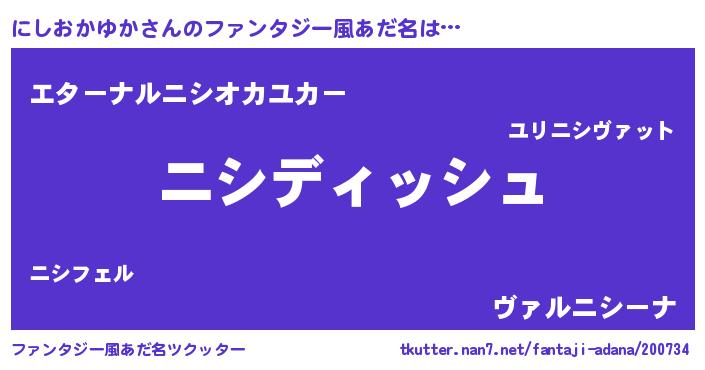 | 胡散臭い通販商品みたいなあだ名 | 『来世でも幸せになれる水素水…その名も「にしおかゆか」』 |