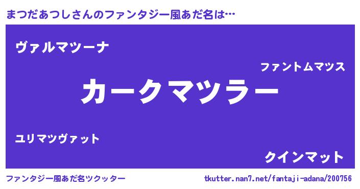 | 意味不明あだ名 | 『住所不定無職まつだあつし(40歳)』 |
