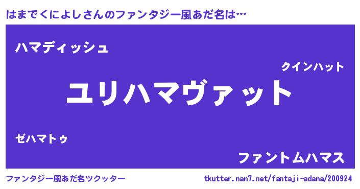 | 胡散臭い通販商品みたいなあだ名 | 『絶対に幸福をもたらす水素水…その名も「はまでくによし」』 |