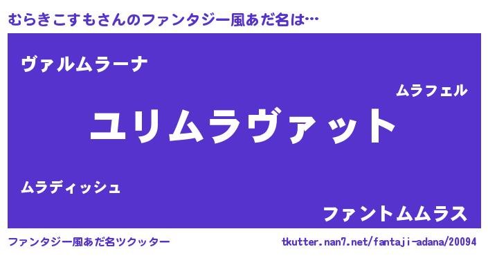 | 料理風あだ名 | 『むらきこすもごはん』 |