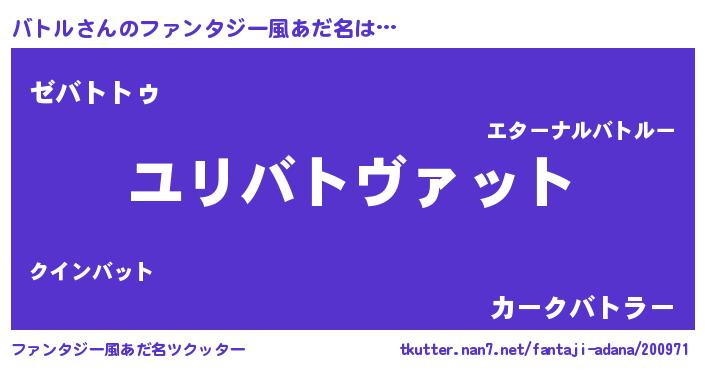 | ヒーロー風カッコイイあだ名 | 『究極戦士バトル』『ウルトラバトルマン』 |