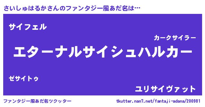 | 意味不明あだ名 | 『さいしゅはるかフォーエバー』 |