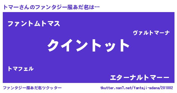 | ヒーロー風カッコイイあだ名 | 『正義の使者トマー』『幻影騎士トマ』 |