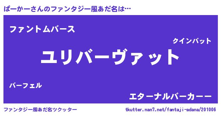 | 男性向けラノベタイトル風あだ名 | 『転生したらばーかーだった件』 |