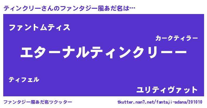 | 意味不明あだ名 | 『ティンクリーフォーエバー』 |