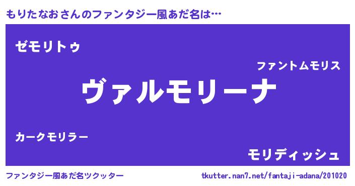 | 男性向けラノベタイトル風あだ名 | 『この素晴らしい世界にもりたなおを!』 |