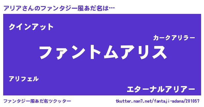 | 意味不明あだ名 | 『とにかく怪しいアリア』『自称アリア』 |