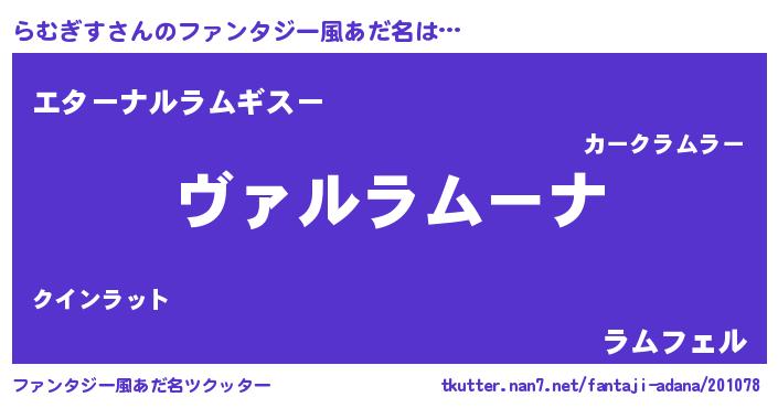 | 男性向けラノベタイトル風あだ名 | 『魔弾の王とらむぎす』『らむぎすの憂鬱』 |