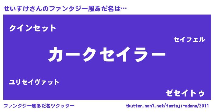 | 男性向けラノベタイトル風あだ名 | 『うちのせいすけが世界を掌握している!』 |