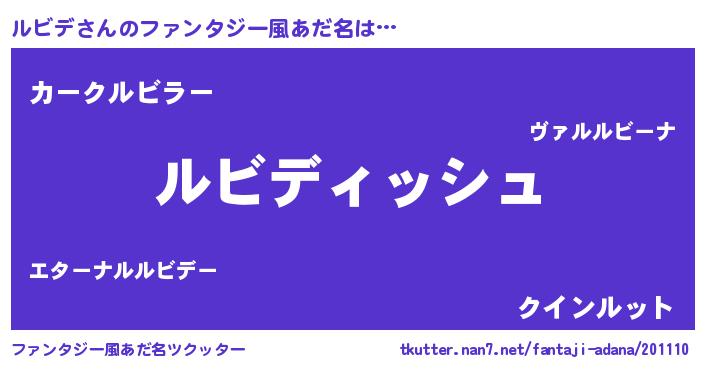 | 女子向けラノベタイトル風あだ名 | 『異世界で失敗しない100のルビデ』 |