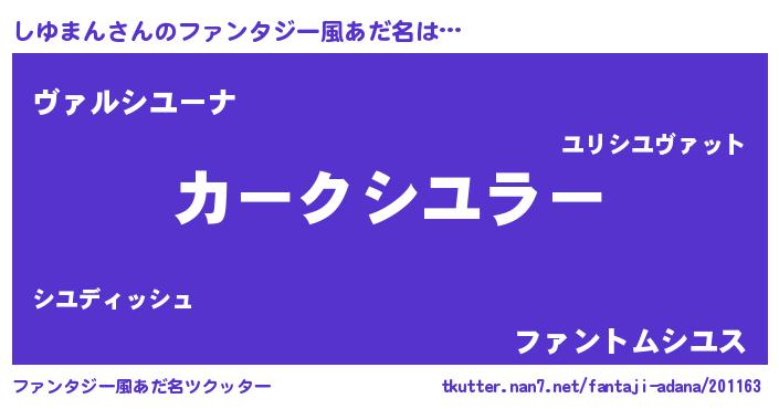 | 欧米人風あだ名 | 『しゆまん・ステッグマイヤー』 |