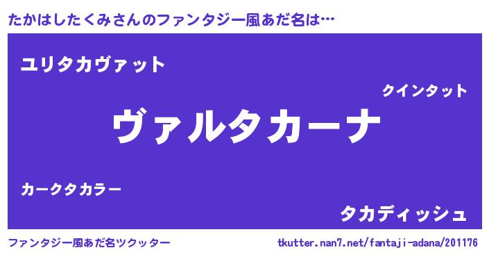 | 男性向けラノベタイトル風あだ名 | 『この素晴らしい世界にたかはしたくみを!』 |