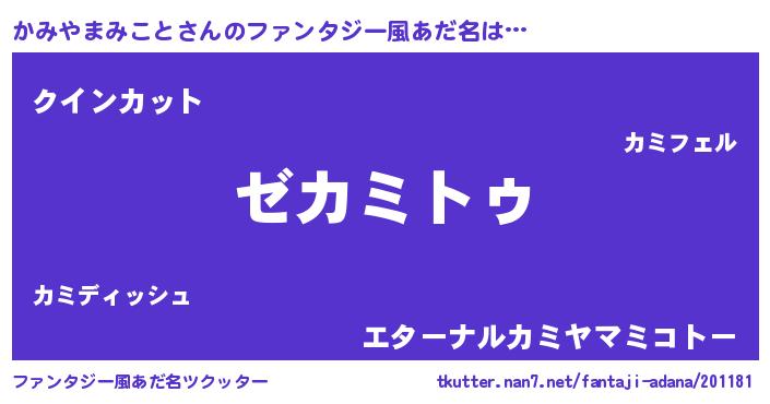 | 欧米人風あだ名 | 『ケンブリッジかみやまみこと』 |