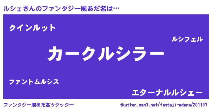 | 自動車の名前っぽいあだ名 | 『フェルーシ』『ルンR』『ルスラー』 |