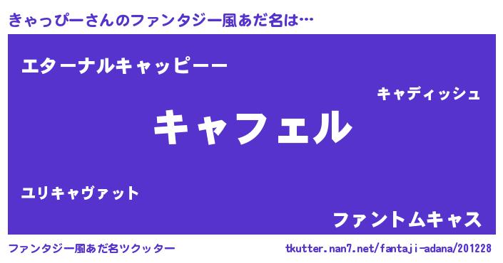 | 胡散臭い通販商品みたいなあだ名 | 『モテモテ間違いなし水晶球…その名も「きゃっぴー」』 |