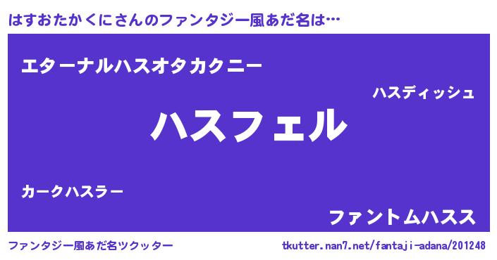 | 男性向けラノベタイトル風あだ名 | 『ハスオタカクニアートオンライン』 |