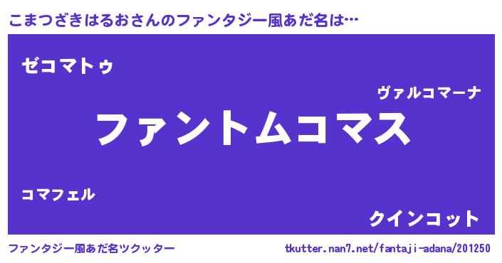 | ポケモン風あだ名 | 『コマゴンZ』『ヒコマツザキハルオ』 |