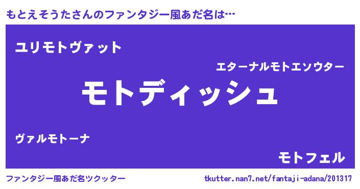 | ヘコむあだ名 | 『もとえそうた(苦笑)』『もとふぇ~』 |