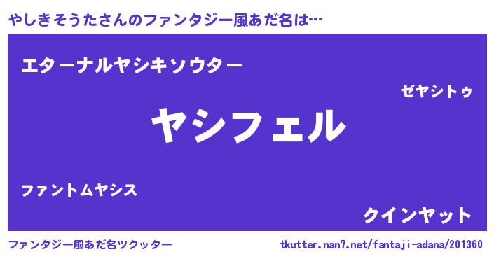| 胡散臭い通販商品みたいなあだ名 | 『必ず成功する水晶球…その名も「やしきそうた」』 |