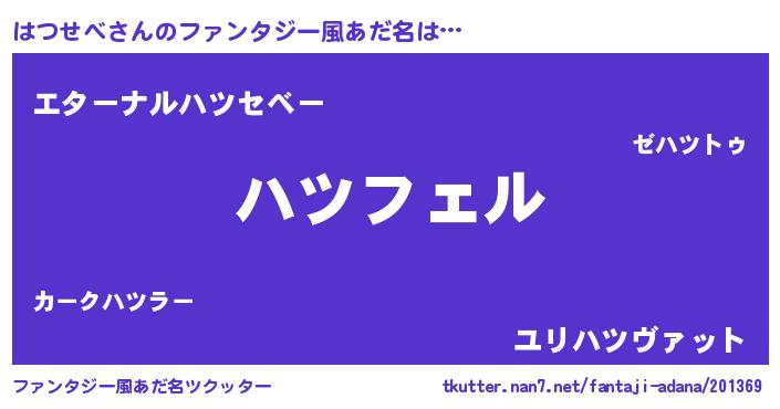 | 男性向けラノベタイトル風あだ名 | 『はつせべの憂鬱』『緋弾のハツセベ』 |