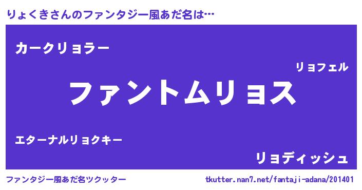 | ヒーロー風カッコイイあだ名 | 『銀牙騎士リョ』『ネオリョクキ』 |