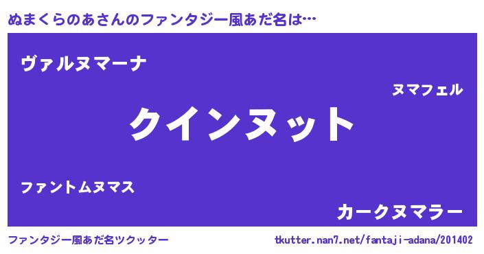 | ポケモン風あだ名 | 『ヌックウザ』『ヌーマイ』 |