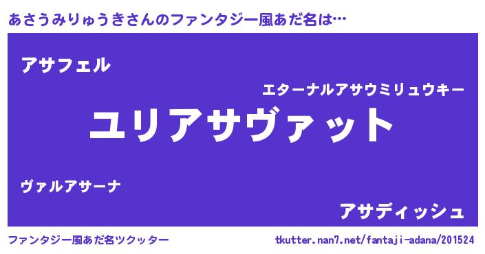 | ヒーロー風カッコイイあだ名 | 『スーパーアサウミリュウキ』 |