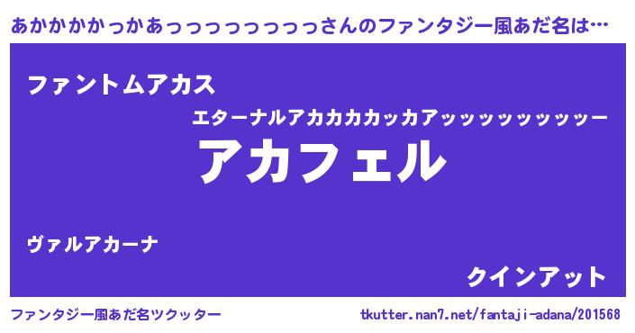 | 男性向けラノベタイトル風あだ名 | 『あかかかかっかあっっっっっっっっの憂鬱』 |